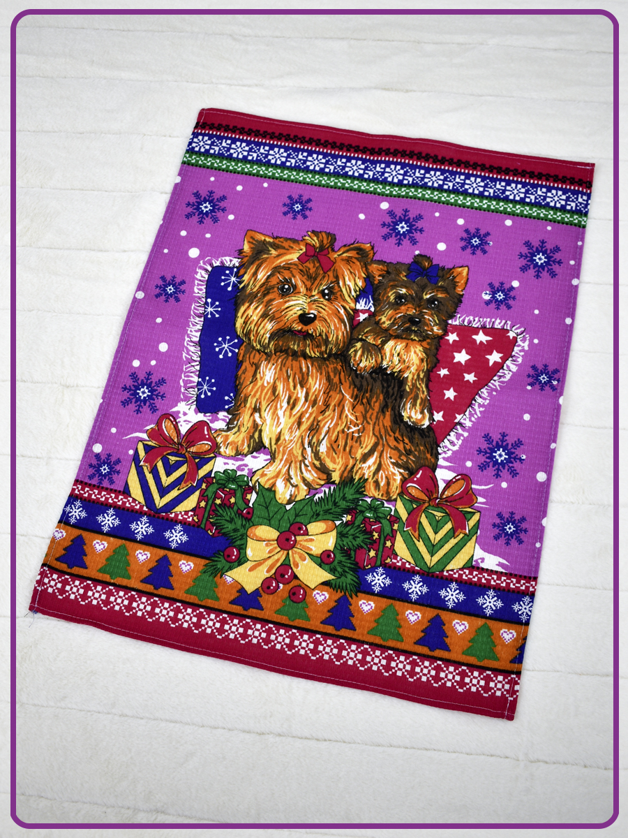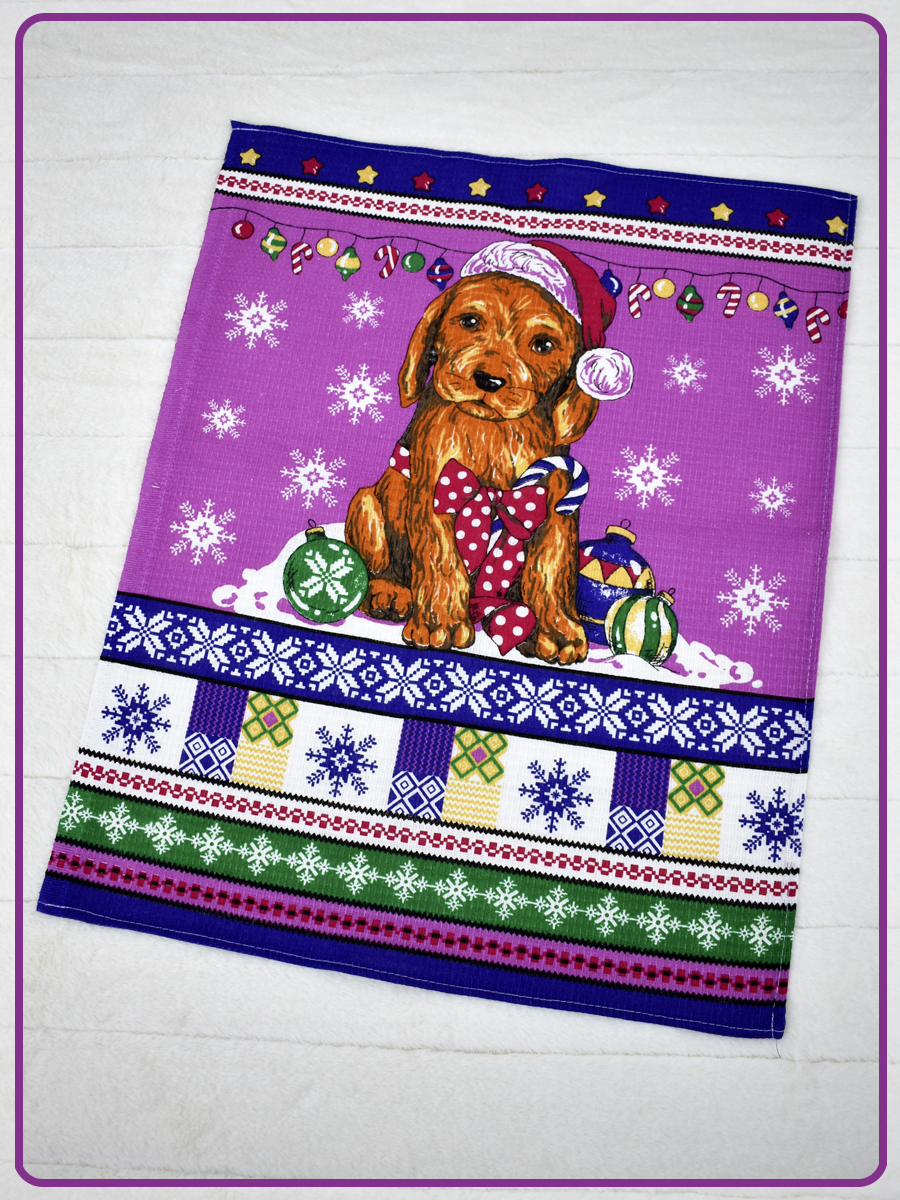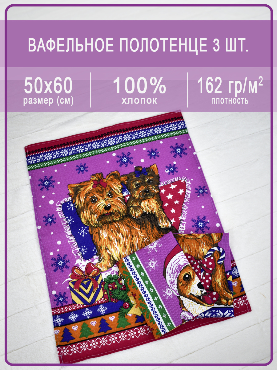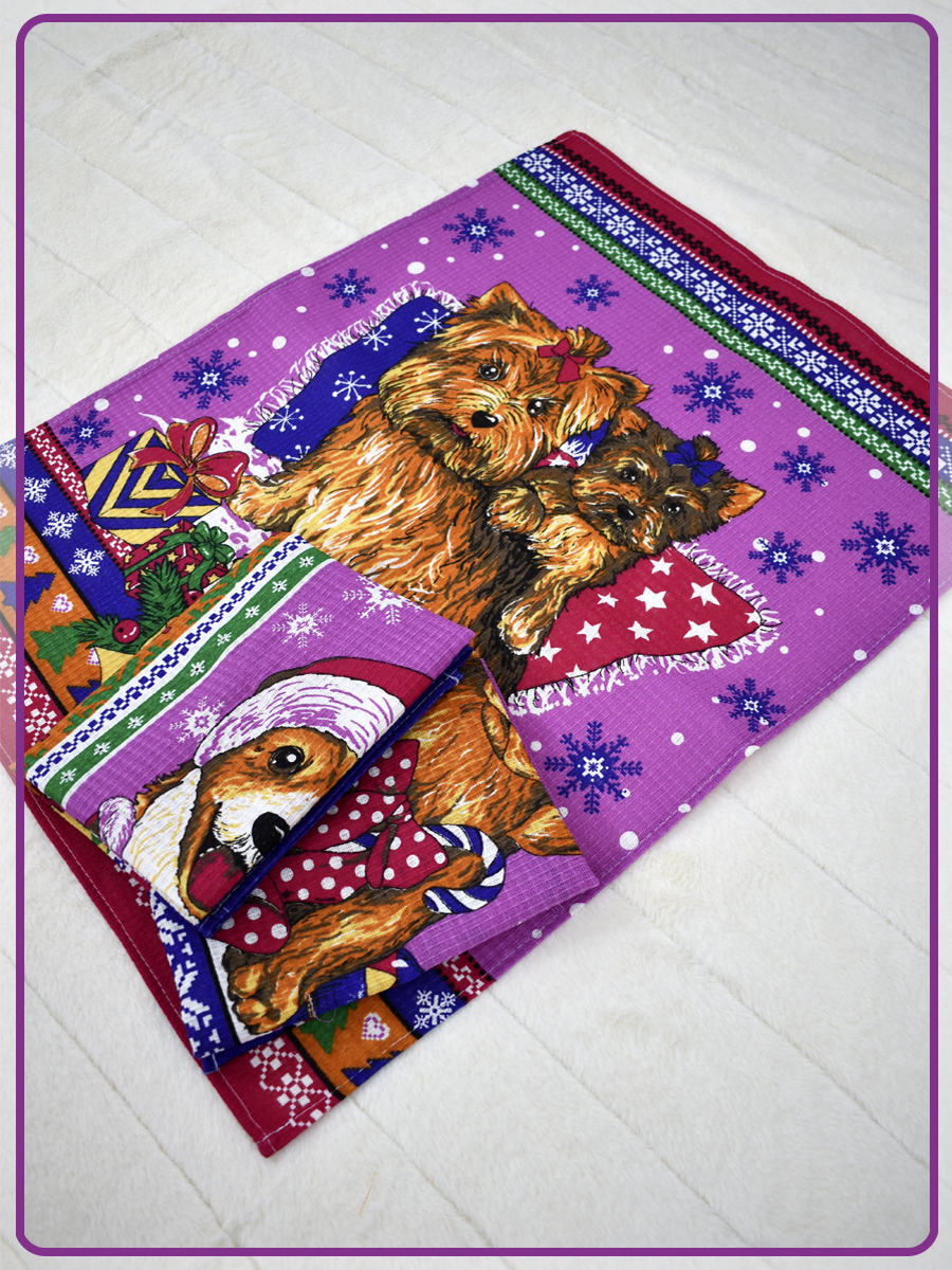 • Набор вафельных полотенец купон Щенята малиновый (50х60 - 3 шт.)
